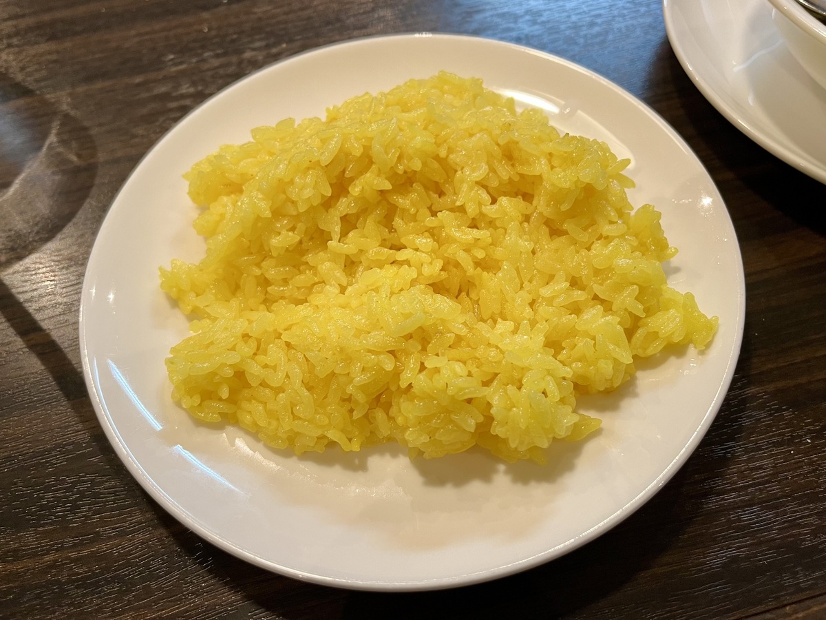 焼きたてのプレーンナンも香ばしくておいしいのですが、そのほかにライスやターメリックライスを選ぶこともできます(ライス・ターメリックライス・プレーンナンは食べ放題)。