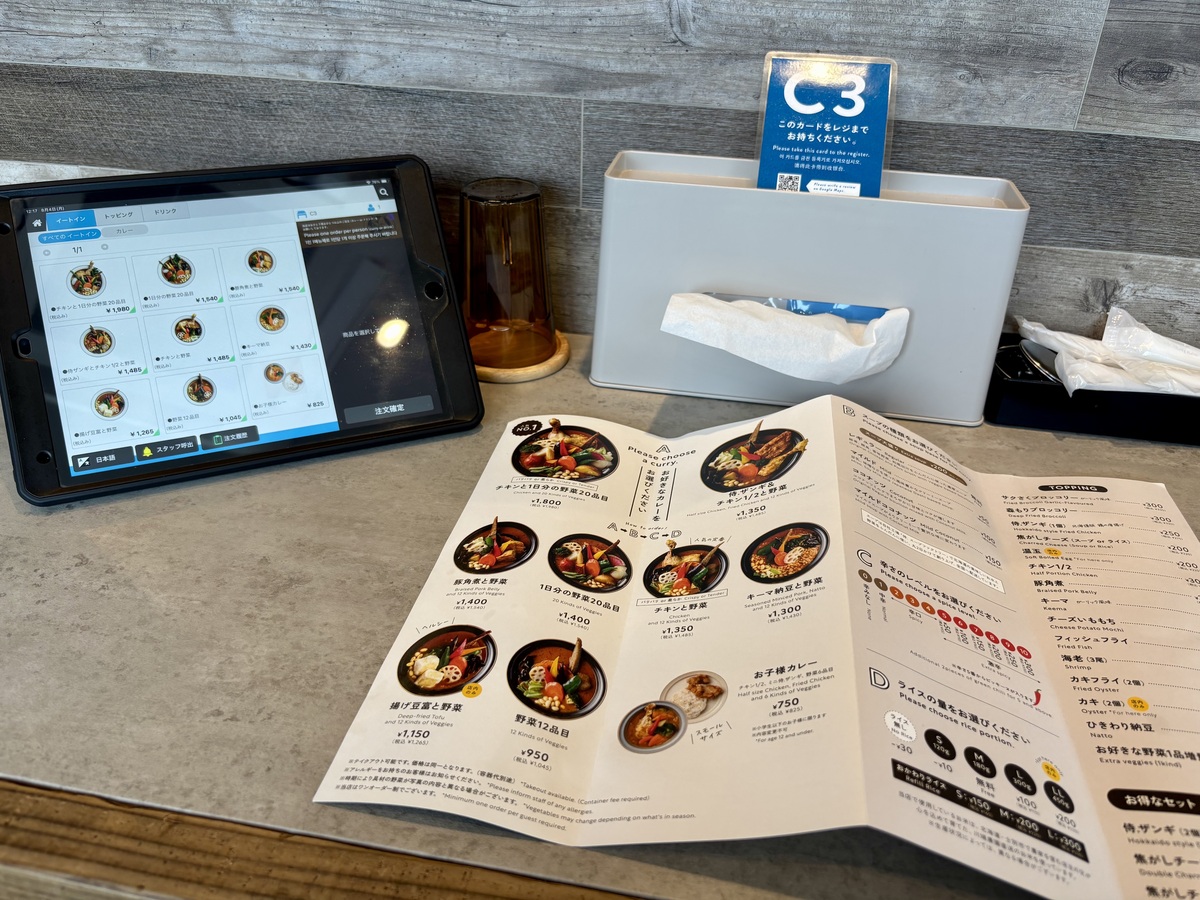 メニューのほか、辛さやライスの量、トッピングなどもタブレットにて注文します。
