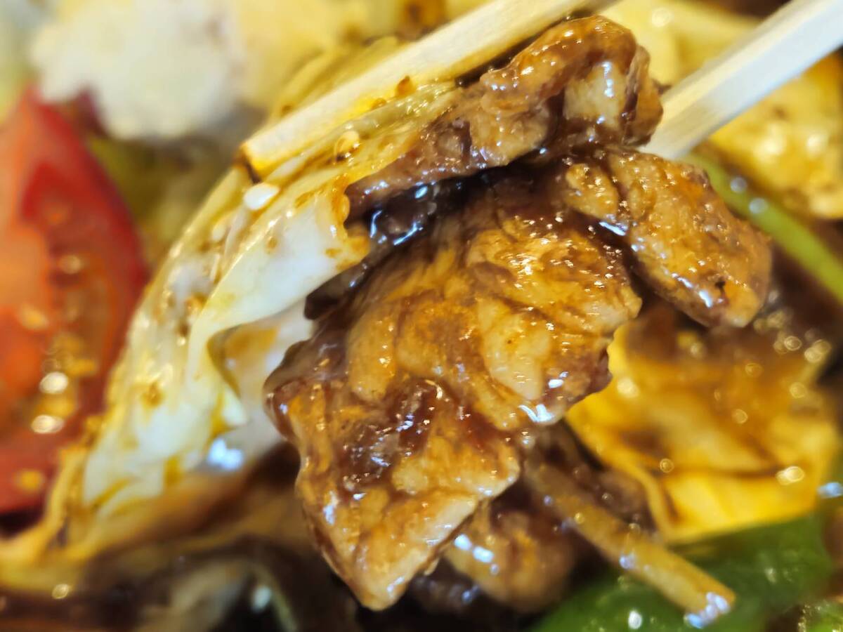 柔らかい豚肉に甘辛いタレがたっぷり絡んだ濃いめの味わい。