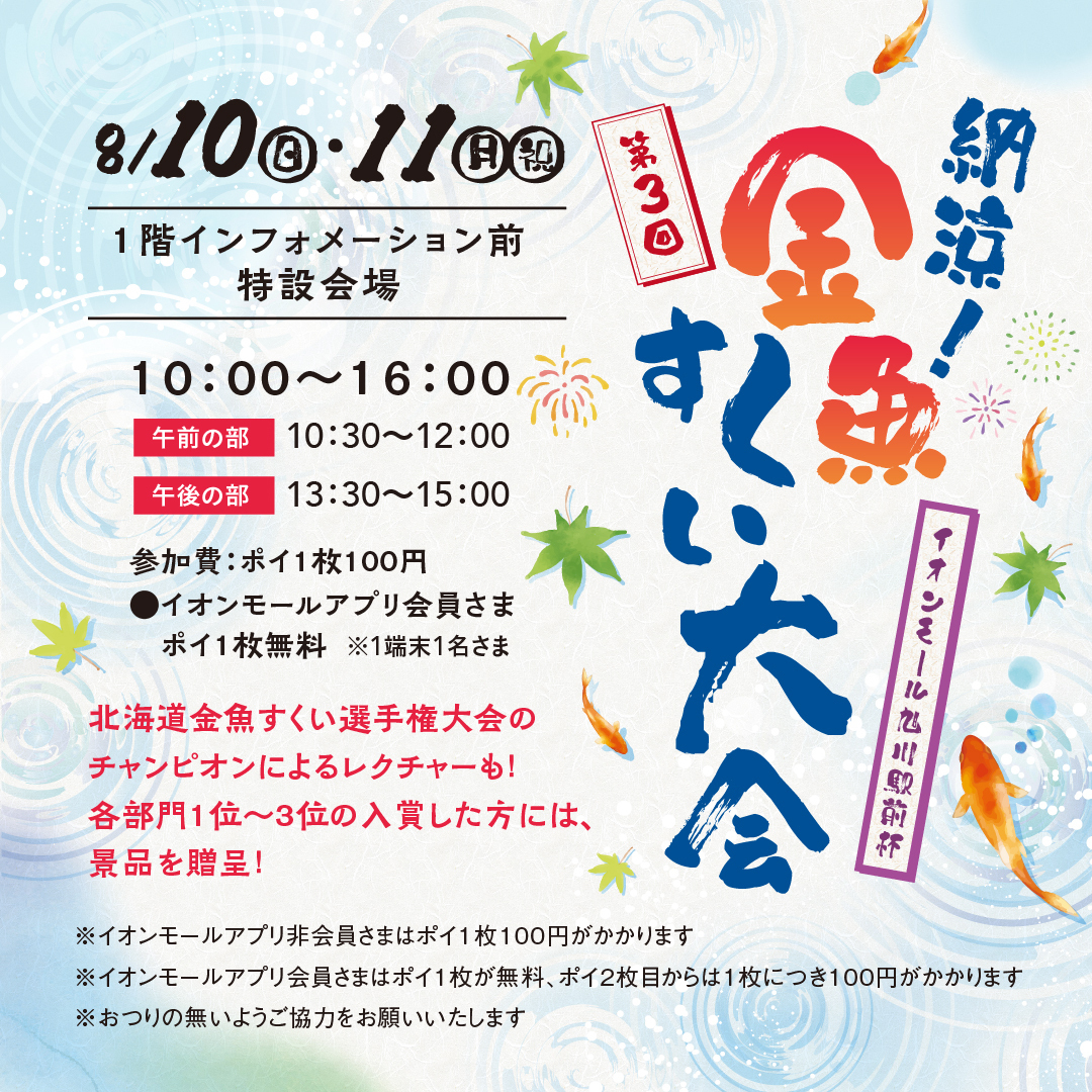 2025年8月10日(日)・11日(月祝)にイオンモール旭川駅前で『第3回 納涼 金魚すくい大会 イオンモール旭川駅前杯』が開催されます。