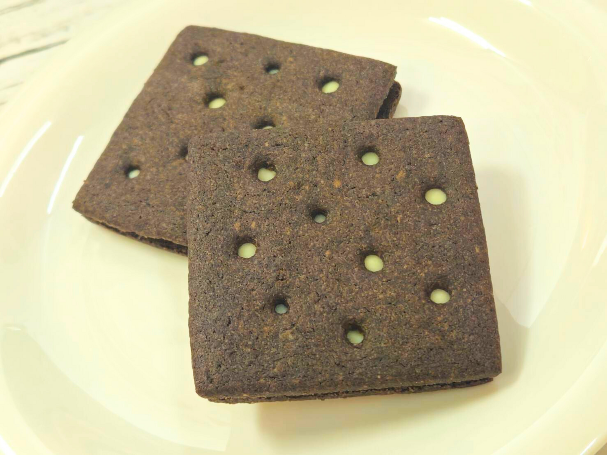 ブラックココアビスケットのサクッとした食感で、ほろ苦さと甘さのバランスが丁度良い美味しさ。