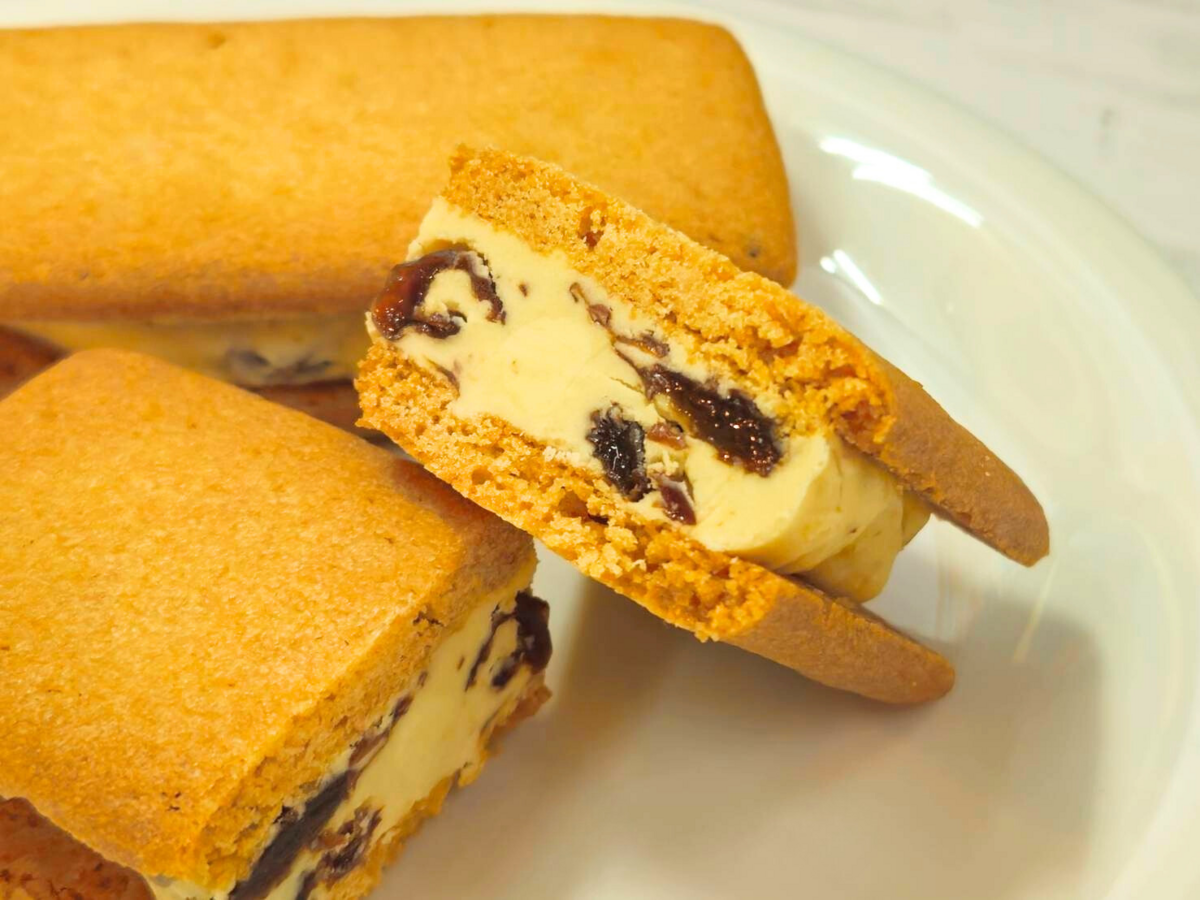 バターの風味が豊かなクッキー生地はサクッと食感で、中のバウムクーヘンはしっとりで洋酒を合わせた少し大人な味わい。