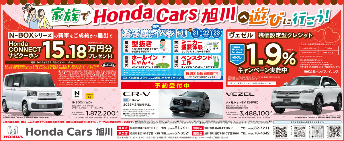 Honda Cars 旭川では2月21日(土)・22日(日)・23日(月・祝)でお子様向けイベントを開催!
