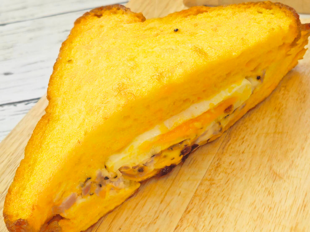 中に入っているのはマヨネーズで和えたハムと半熟の卵。