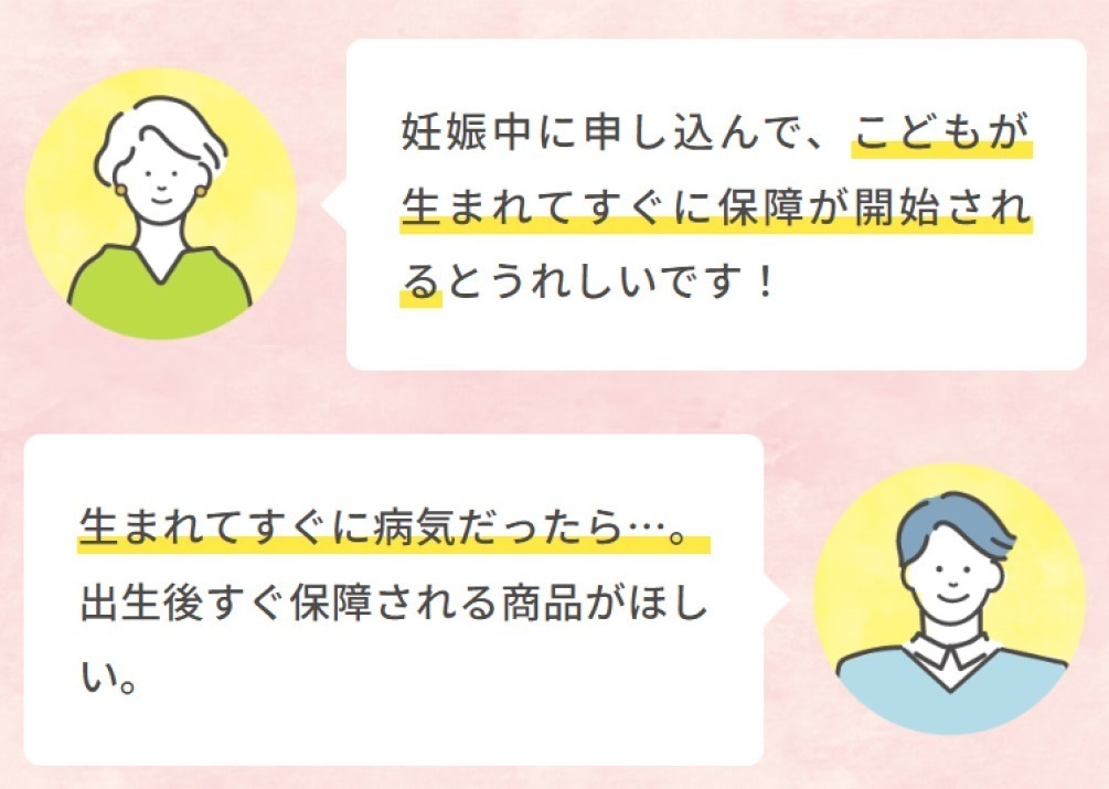 すぐに保障が始まるので、赤ちゃんのもしもに備えることができて安心です。