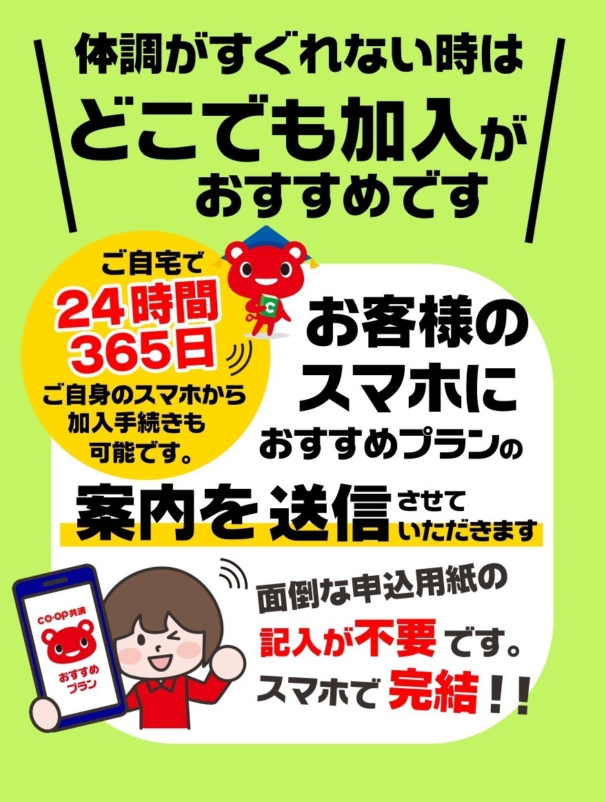 面倒な申込用紙の記入が不要で、ご自宅で24時間365日ご自身のスマホから加入手続きが可能です。