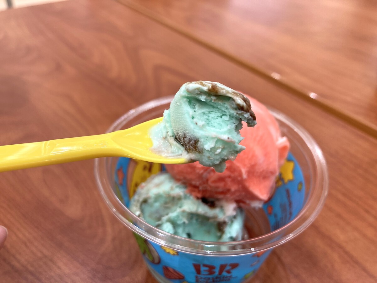 次は、「サーティワンスーパーチョコミント」と「ポッピングシャワー」と「チョコレートミント」をトリプルでミント尽くしで食べてみようかな?