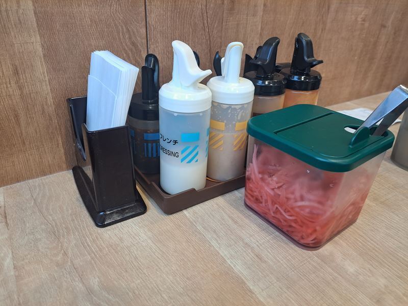 牛めしなどにも対応のテーブルセットになっていて「いつもの紅ショウガ」もセットされていましたよ。