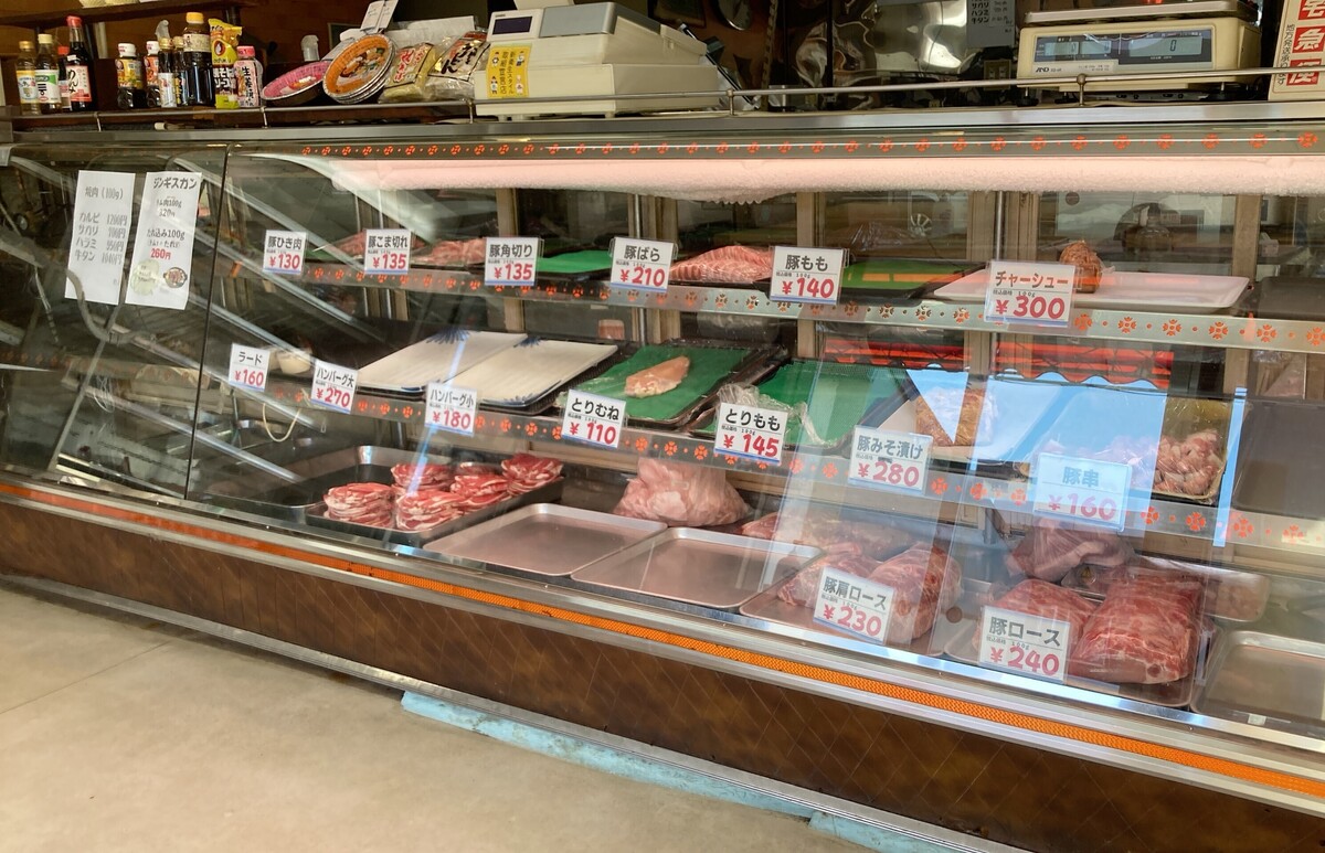 隣のショーケースにはお肉も並んでいて、こちらもお手頃価格で美味しそう。