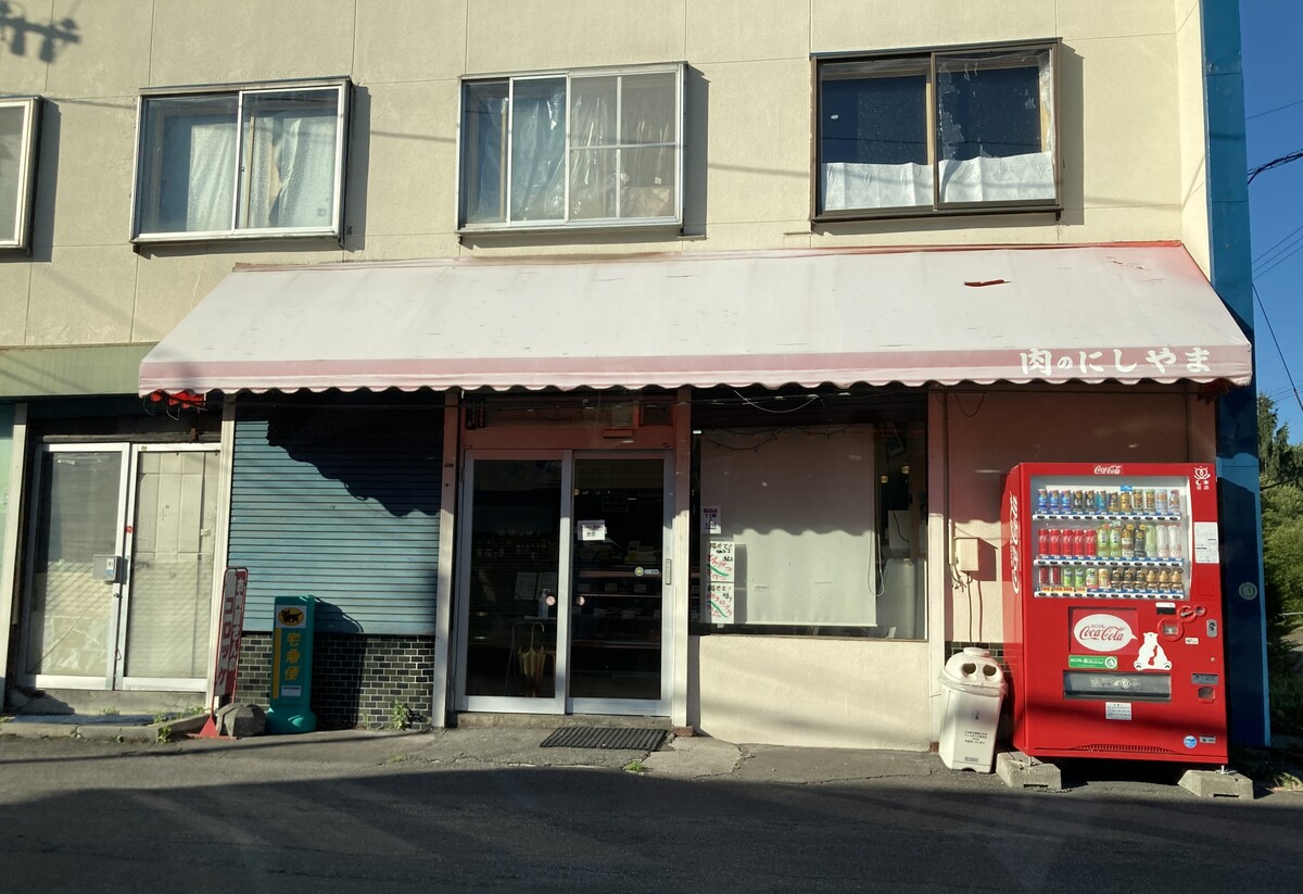 ラーメン屋さん「熊ッ子本店」の角を曲がった並びにある、昔ながらのまちのお肉屋さん「肉のにしやま」。