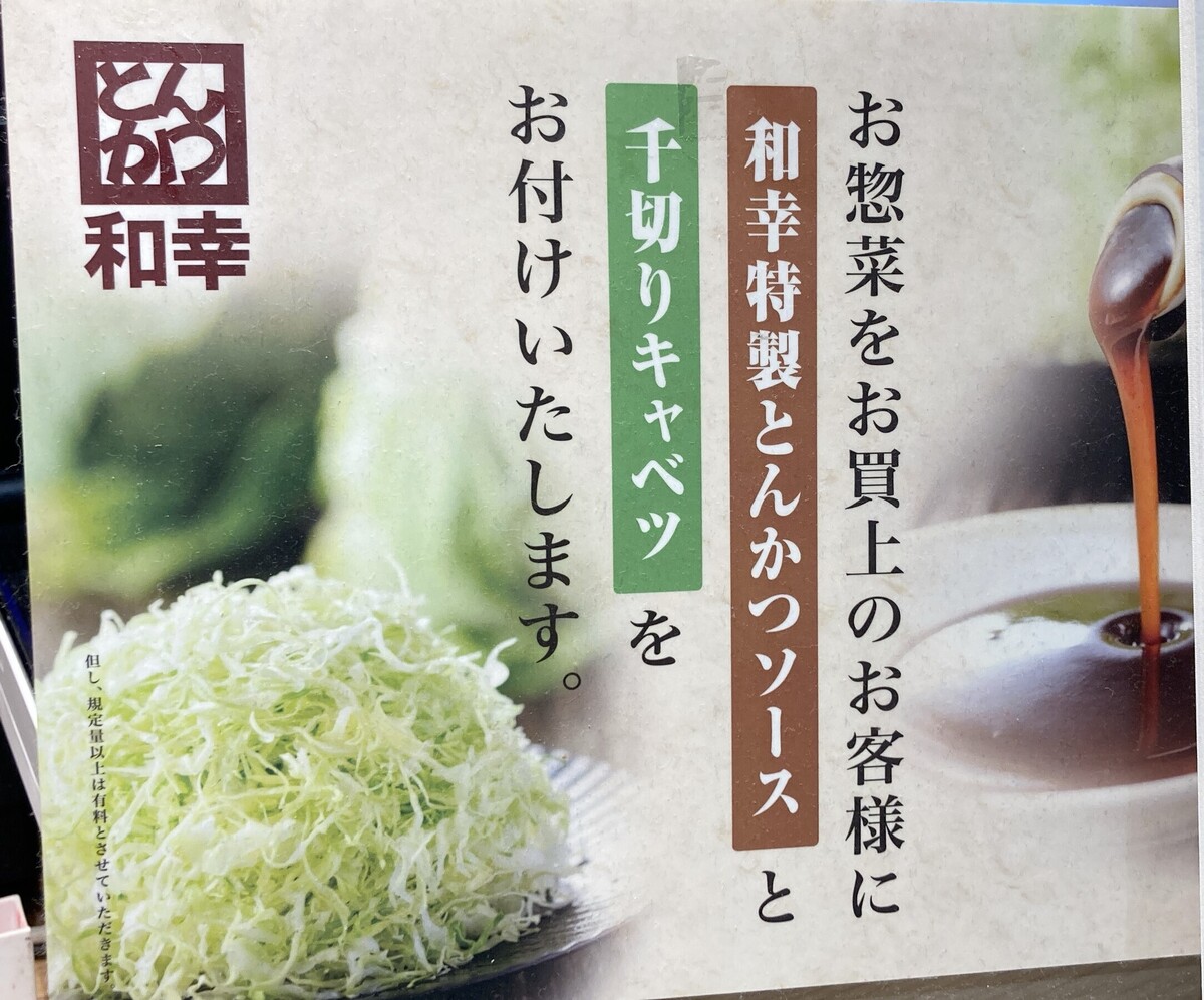 さらに、和幸特製ソースと千切りキャベツが無料で付いてきます。