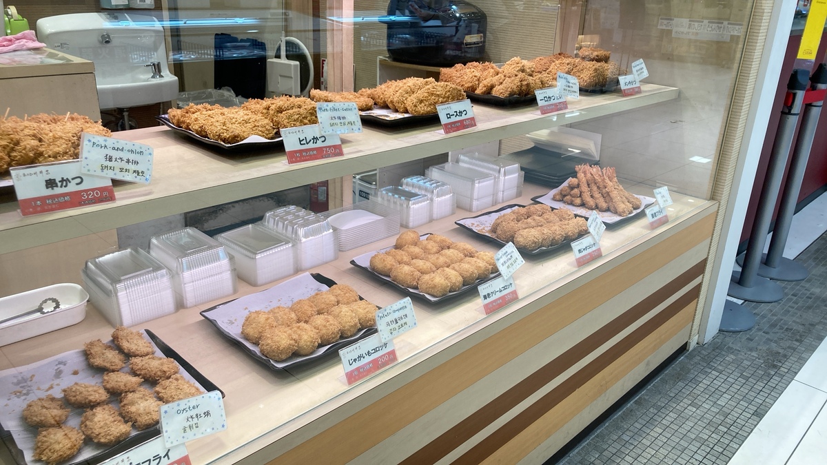 店頭のショーケースには、おなじみの揚げ物がずらり!