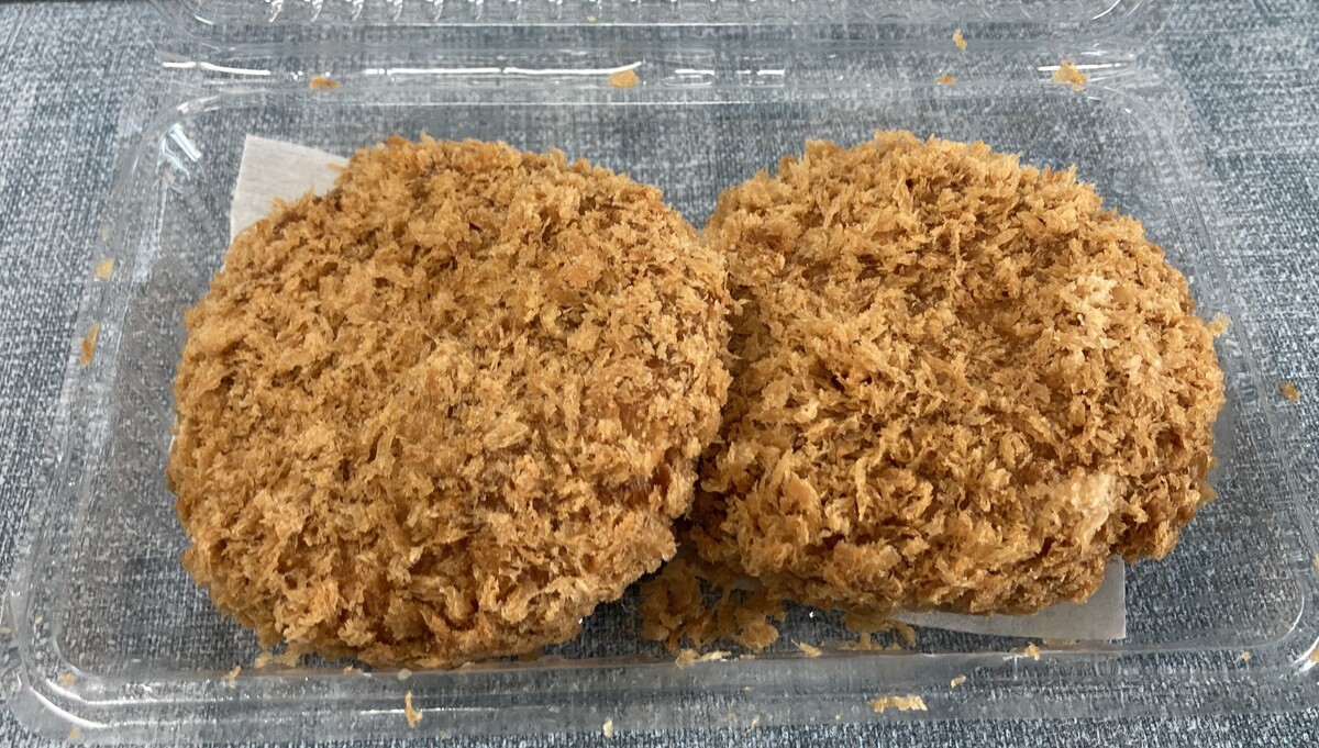 今回はハムカツ(税込150円)、肉コロッケ(税込85円)、クリームコロッケ(税込95円)を購入。