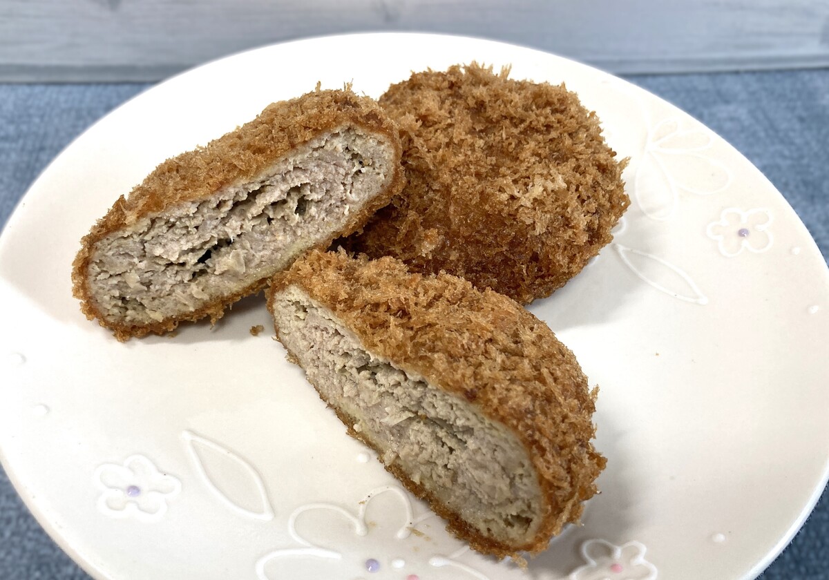 クリームコロッケは具がぎっしりで、玉ねぎやホタテの貝柱のような食感も感じられる手作り感たっぷりの仕上がり。