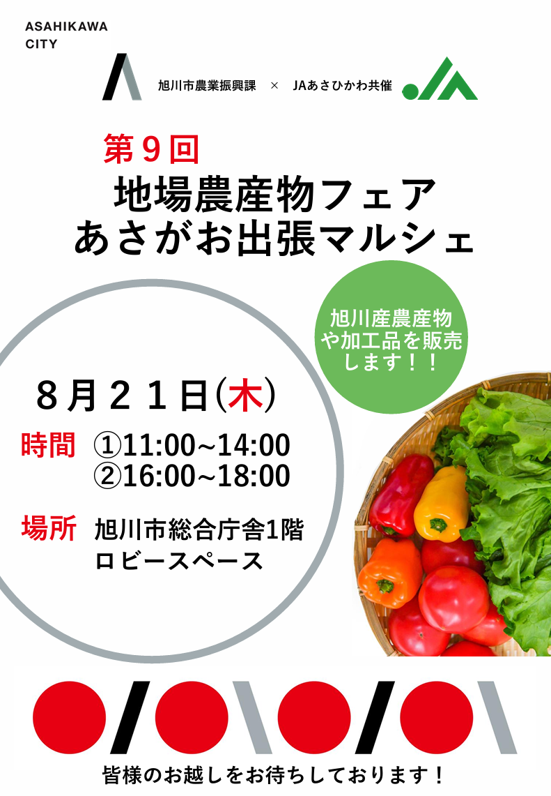 2025年8月21日(木)に旭川市総合庁舎で『第9回 地場農産物フェア あさがお出張マルシェ』が開催されます。