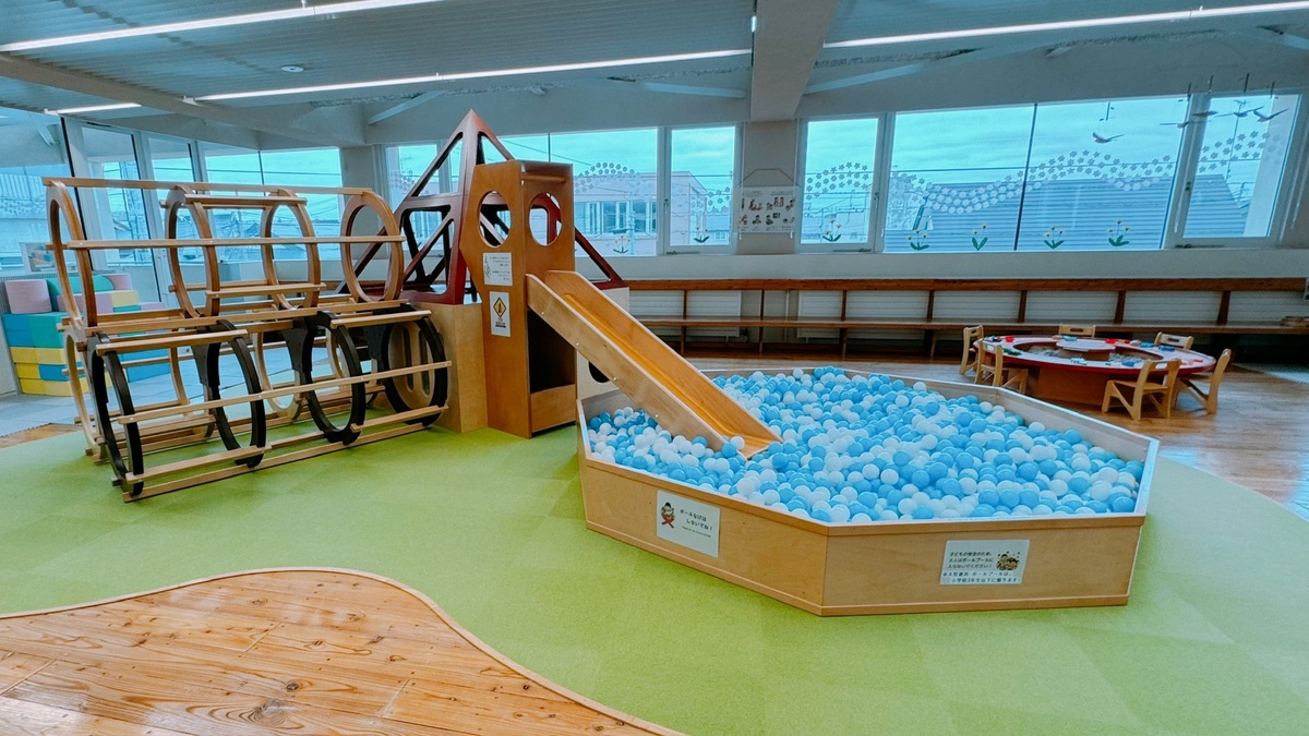 室内にはボールプールなどがあり、写真の右奥に写っているのは砂場。