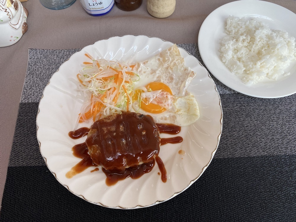 ハンバーグは、学食で出てくるようなどこか懐かしい味。サイコロステーキも驚くような安さですが、「ハンバーグ ランチ」も500円とコスパ最強ですね。