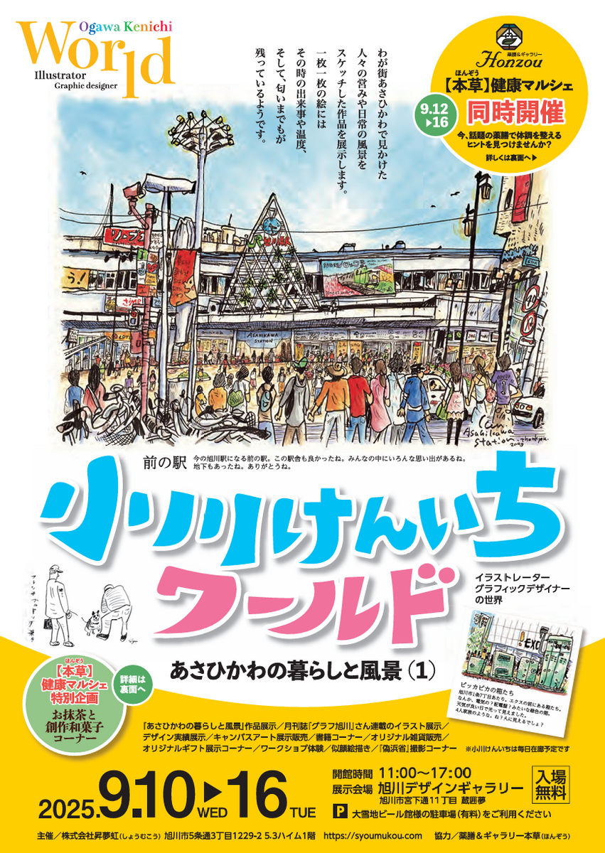 2025年9月10日(水)から16日(火)まで、旭川デザインギャラリーで『小川けんいちワールド あさひかわの暮らしと風景(1)』が開催されます。